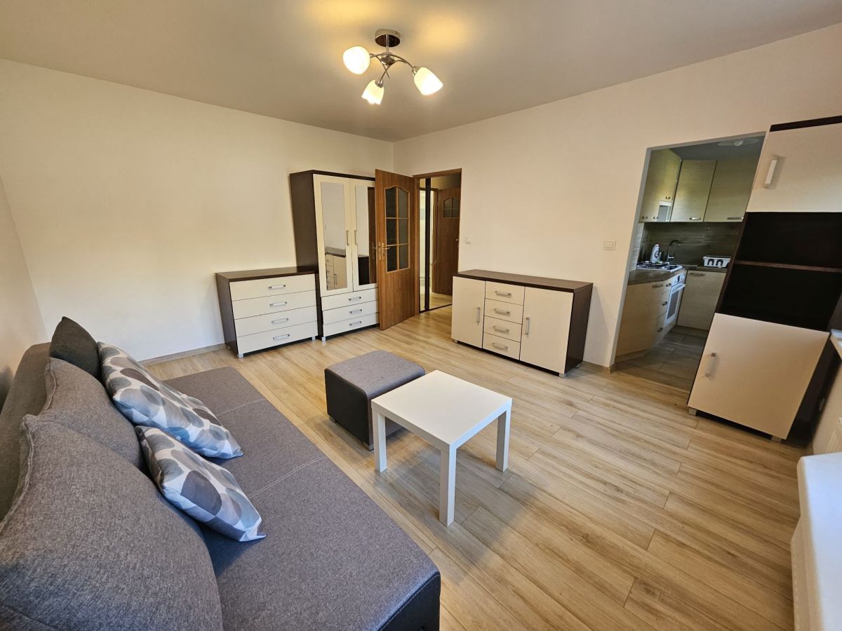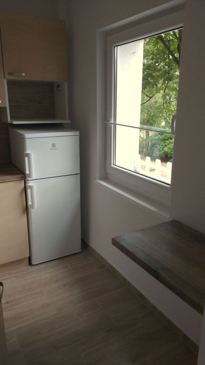 Mieszkanie o powierzchni ok. 27 m2 - pokój dzienny salon połączony z kuchnią oraz łazienka z kabiną prysznicową. Całość umeblowana i w pełni wyposażona. Pokój: rozkładana kanapa, szafy; w kuchni: meble w zabudowie, lodówka z chłodziarką. Łazienka niezmiernie funkcjonalna, pralka, kabina prysznicowa. W przedpokoju obszerna szafa w zabudowie. Dobry standard wykończenia.